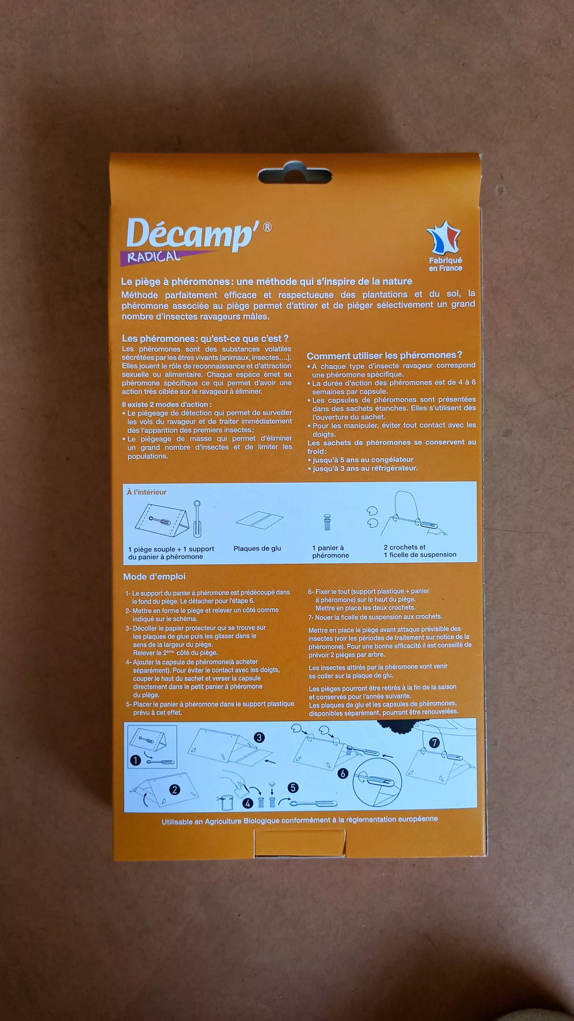 Cet article comprend uniquement le piège. Les phéromones sont à acheter séparément en magasin (conservation au frais).