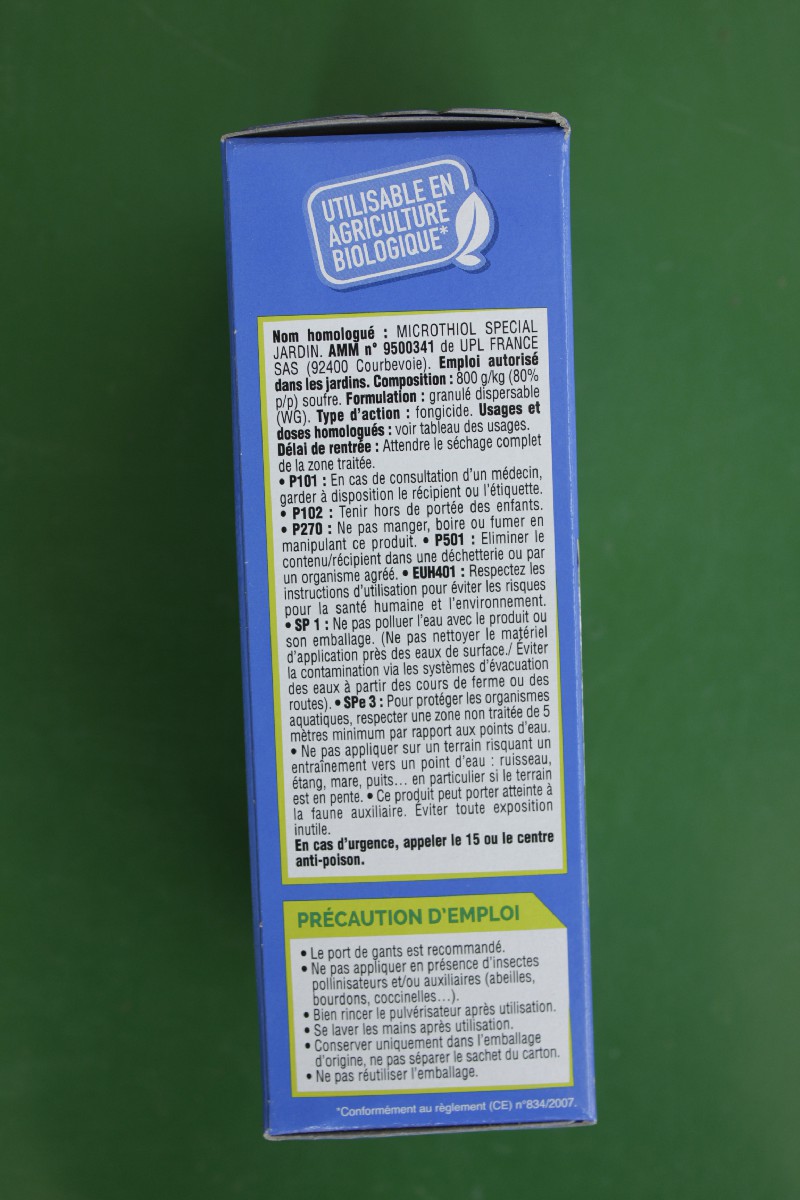 Les arbres fruitiers sont sujets à de nombreuses maladies : l’oïdium (aussi appelé « blanc »), la tavelure, l’érinose. Celles-ci peuvent se propager rapidement faute de traitement. Grâce à ses propriété anti-fongiques naturelles, le souffre permet de combattre ces maladies. Il s’utilise en traitement préventif (pour prévenir l’apparition des maladies) ou en curatif (pour les soigner). Ses micro-granulés permettent à la fois une dilution facile et sans poussière, et une bonne pénétration du produit sur le feuillage.