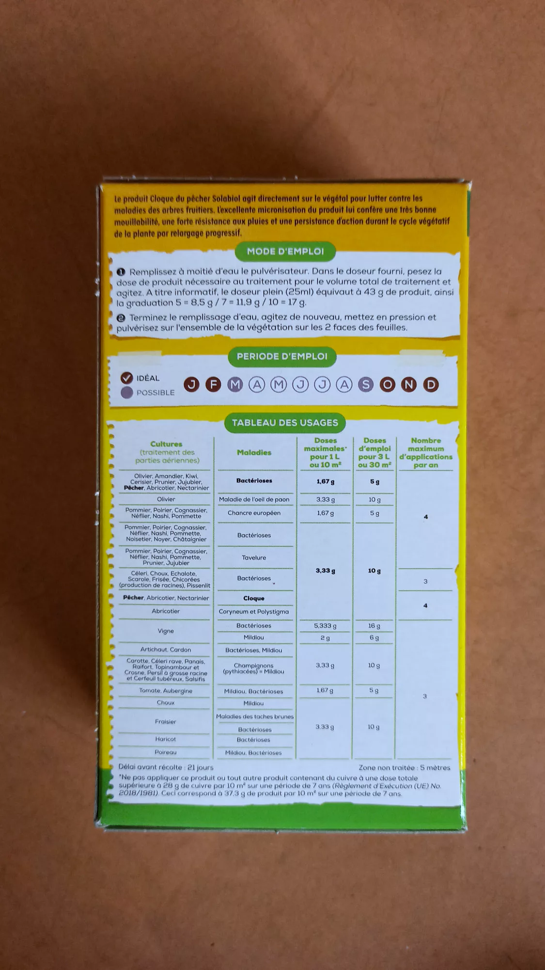 Le produit cloque du pêcher Solabiol agit directement sur le végétal pour lutter contre les maladies des arbres fruitiers. L’excellente micronisation du produit lui confère une bonne mouillabilité, une forte résistance aux pluies et une persistance d’action durant le cycle végétatif de la plante par relargage progressif.